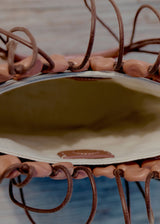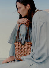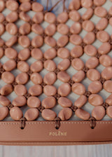 From the Plèi collection, which brings upcycled leather offcuts into play, the “Solé” bag blends innovation and artisanship. Made in France, the 240 pebble-like pearls are created using leather offcuts from other Polène collections. After being threaded onto waxed cotton, they are held in place by 120 hand-tied knots following a traditional macramé technique. This net-style bag is embellished with leather detailing for its stitched smooth leather base and handle. The name “Solé” is a play on the French word for “sun”, showcasing the summery vibe of this bag.