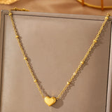 Subtle yet striking, this golden heart pendant is like a secret admirer you wear around your neck. Suspended on a finely crafted bead chain, its smooth curves reflect a soft, luminous glow that pairs effortlessly with everything from cozy knits to silky slip dresses. It’s the kind of necklace that turns everyday moments into something just a little more magical.