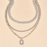 The Pink Gemstone Drapery Necklace offers an opulent display of cascading silver chains, each contributing to an exquisite multi-layered silhouette. At its heart, a delicate yet radiant pink gemstone pendant is framed by a ring of sparkling crystals, capturing the essence of refined luxury. This necklace is a masterpiece of craftsmanship, designed for the discerning collector seeking a blend of modern style and classic elegance. NOTE: This listing indeed includes ALL 3 Necklaces!