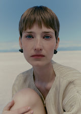 The Téré stud earrings echo the organic shape of beach pebbles. The hand-polished stones are interlaced with delicate leather cording. The name “Téré” is a play on the French word for “earth”, echoing the mineral nature of the collection and the way in which the material is worked.